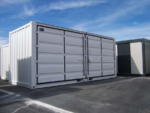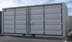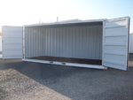 Ce conteneur de stockage ouvert de 6 mètres de long possède quatre portes s’ouvrant sur toute sa longueur, offrant un accès latéral complet.