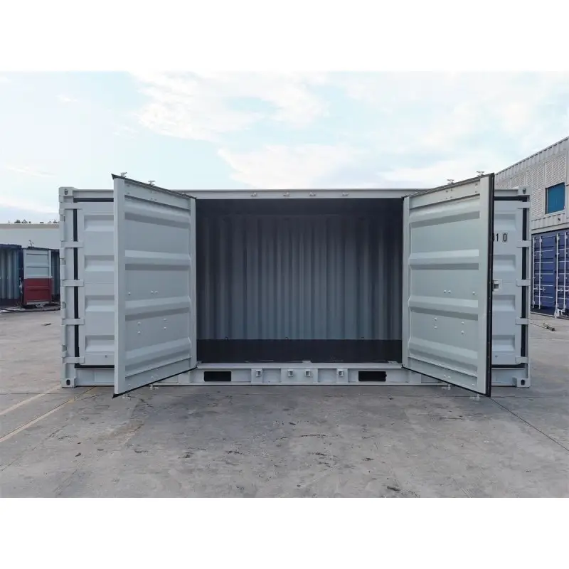 Ce conteneur de stockage ouvert de 6 mètres de long possède quatre portes s'ouvrant sur toute sa longueur, offrant un accès latéral complet.