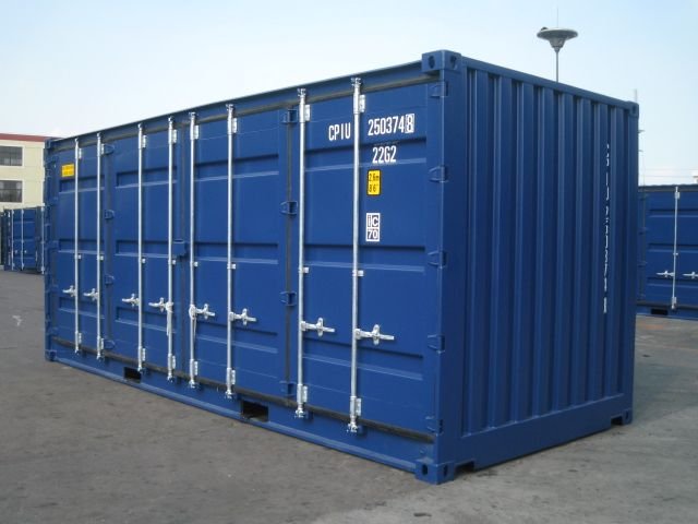 Ce conteneur de stockage ouvert de 6 mètres de long possède quatre portes s'ouvrant sur toute sa longueur, offrant un accès latéral complet.